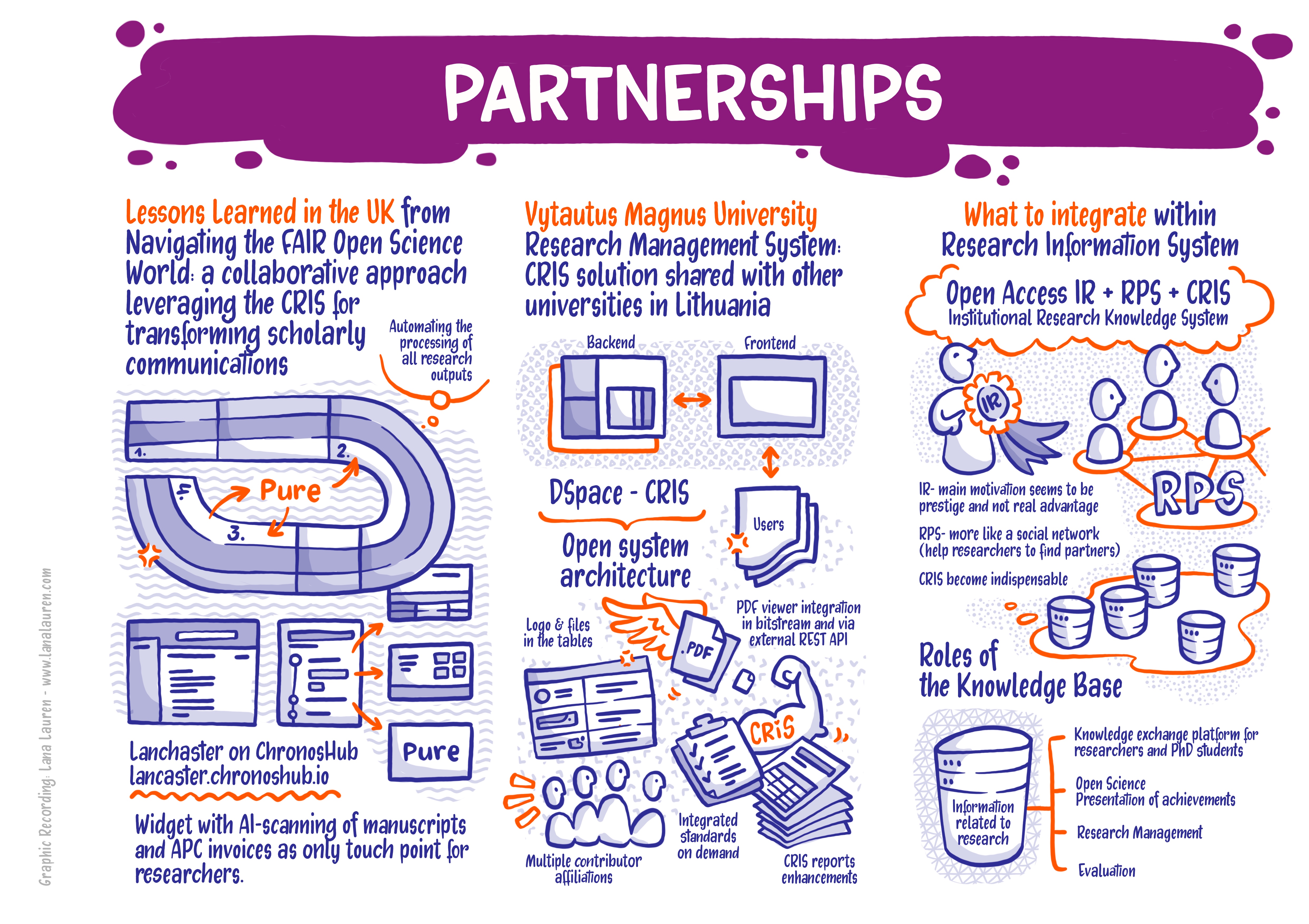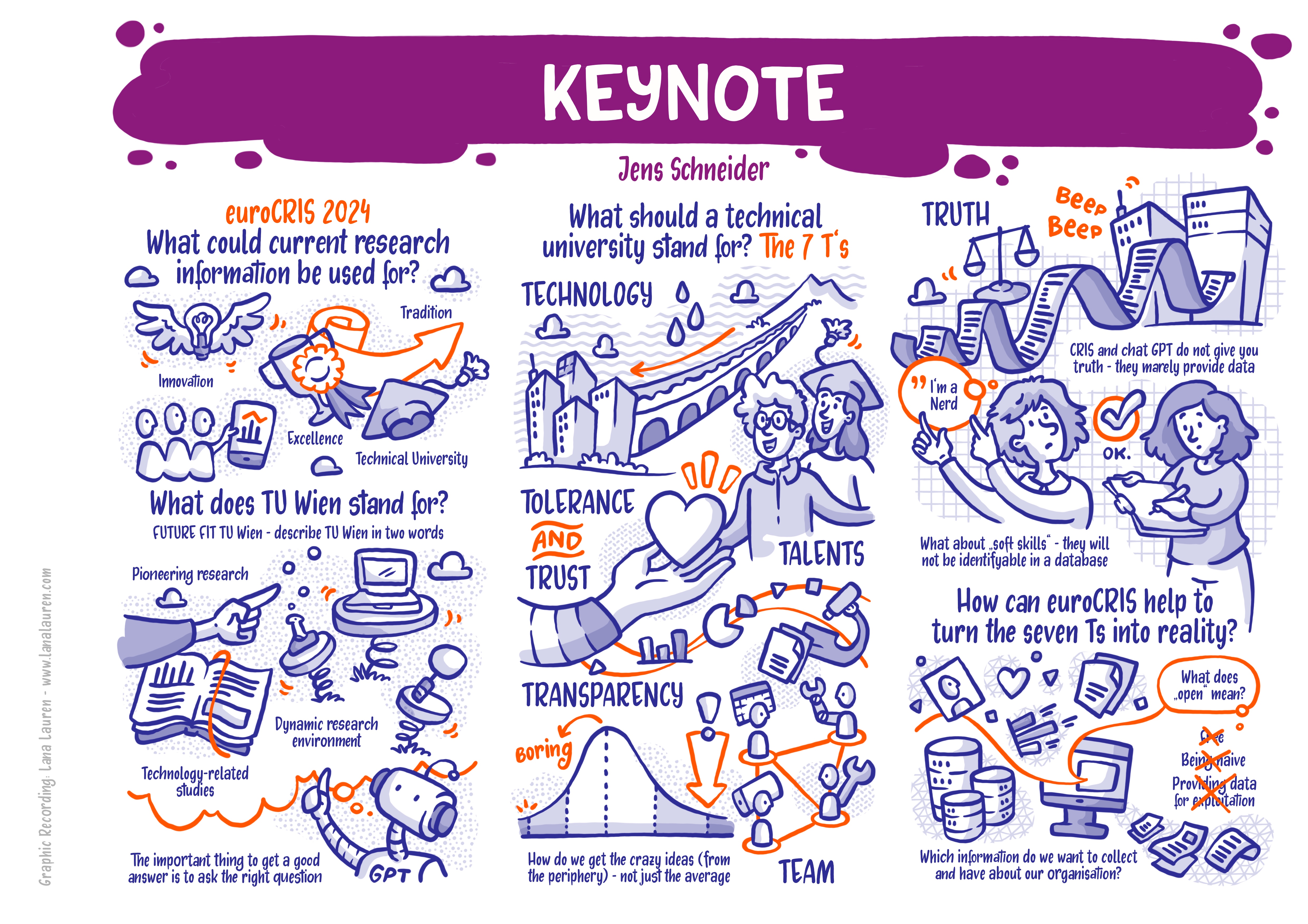 These are Graphical Recordings (by Lana Lauren) of different presentations at the euroCRIS Conference 2024, held in May 2024 at TU Wien. For details on the Conference see: cris2024 - EuroCRIS