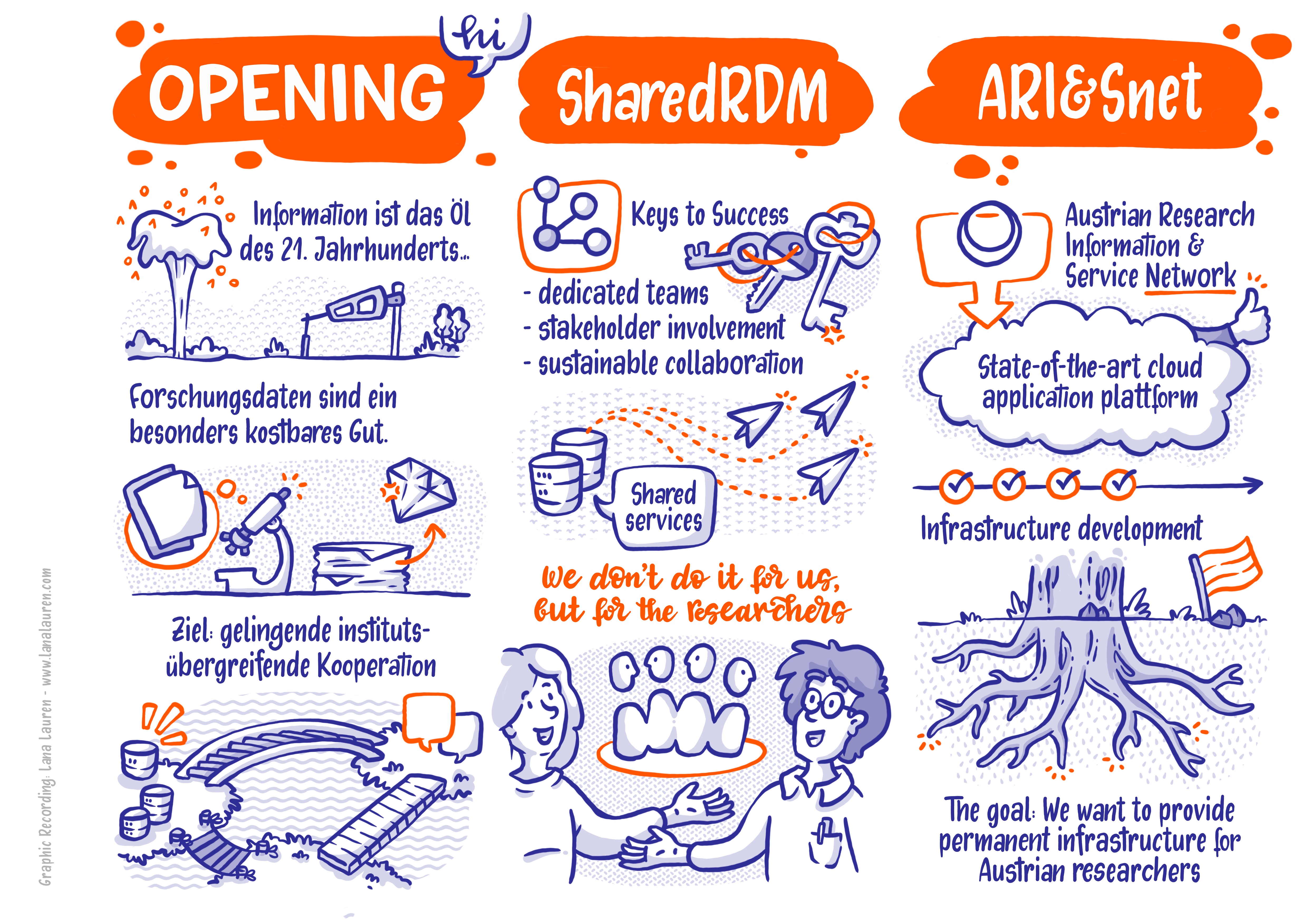 These are Graphical Recordings (by Lana Lauren) of different presentations at the Symposium Cross-Cutting Research Support Services, held on May 14th at TU Wien.
